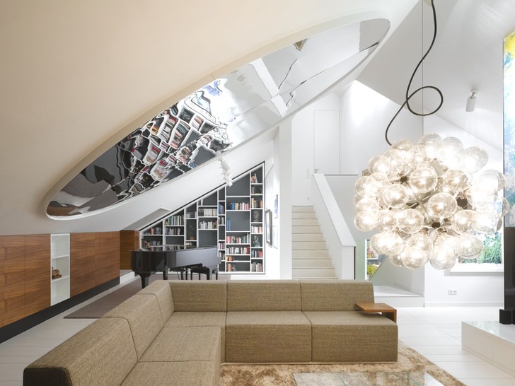 - Интересно вписываются в такой дизайн отделка из металла, хрома, глянца и других материалов. Благодаря некоторым дизайнерским хитростям интерьер помещения можно как зрительно увеличить, так и уменьшить.